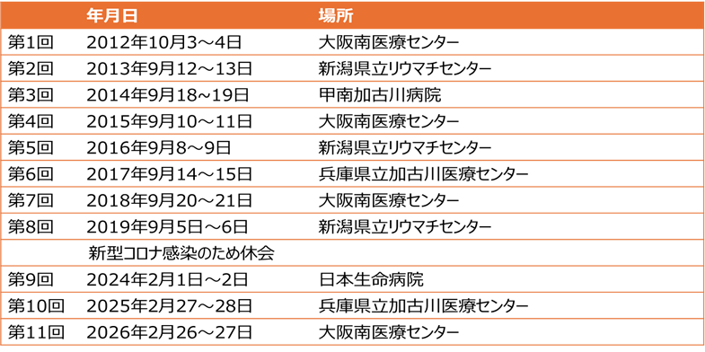この会は2012年から毎年多職種が連携してリウマチ医療を行っている病院間でリウマチ診療における専門性とスキルを高めるために、情報交換と交流を深めることを目的として開催しています。
